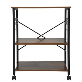 Quick view Compare Simple Wood Kitchen Cart with 3-Tier Storage Space, Movable Microwave Stand with 10 Hooks - Brown and Frosted Black XH Details *High-quality particleboard*Stable x-shaped brackets*10 s-shaped hooks*Lockable universal wh… Now: $94.11 MSRP: $125.48 Choose Options